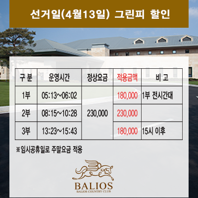 제목: 선거일(4월 13일) 그린피 할인 안내