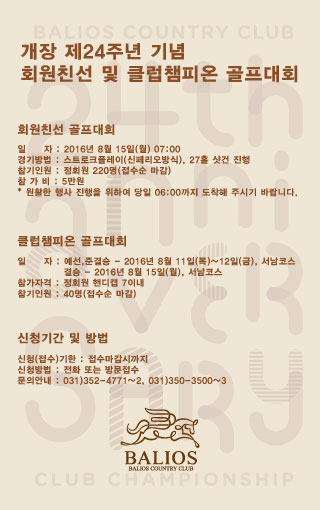 제목: 개장 제24주년 기념 회원친선 및 클럽챔피온 골프대회