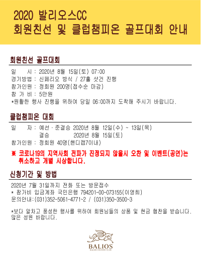 제목: 2020회원친선 및 챔피온골프대회