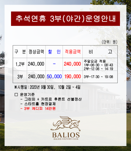 제목: 2020년 추석연휴 3부(야간)운영안내